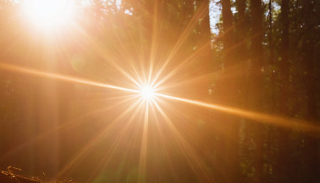 Sunlight filtering through forest canopy creating warm radiant beams.