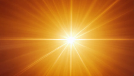 A vibrant and intense golden light radiates from the center, creating a starburst effect with rays extending outward. The background is blurred, emphasizing the brightness and energy of the light source.