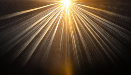 A mesmerizing image of glowing sun rays radiating across a deep black background, featuring vivid light beams and subtle flares that evoke a sense of contrast, energy, and ethereal beauty, ideal