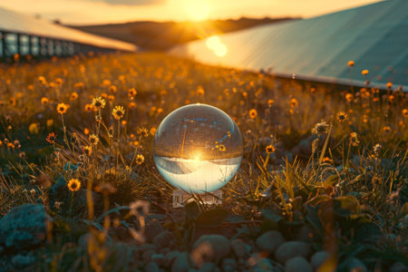 large solar panel absorbs the last rays of the setting sun, symbolizing the harnessing of green energy for a sustainable future.