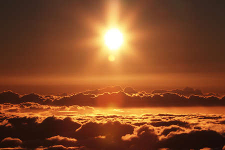 Beautiful sunrise cloudy sky from aerial view. Airplane view above clouds - Background