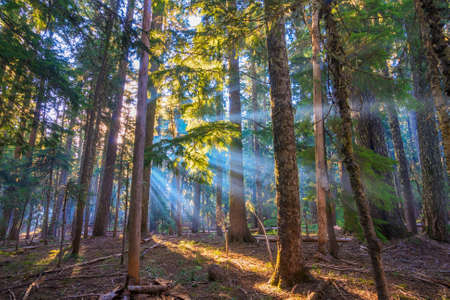 Sunrays filtering thru the forest foliage in a Vancouver park, British Columbia, Canada.