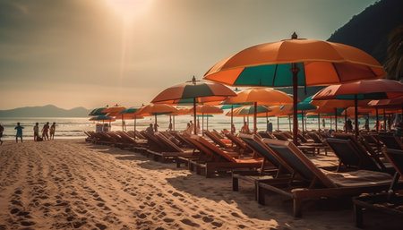 Sunset over tranquil seascape, perfect summer vacation generated by artificial intelligence
