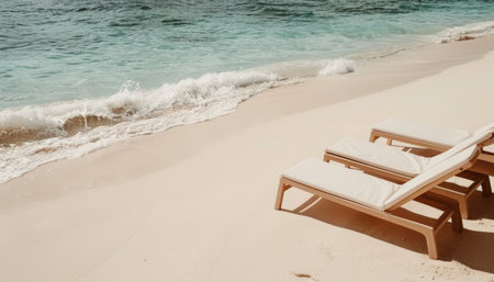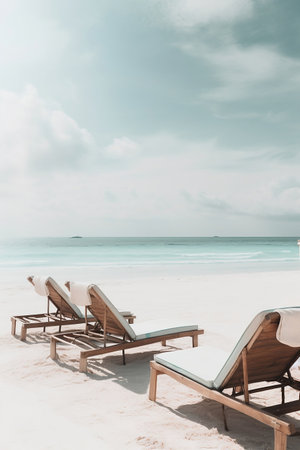A pair of chairs summer tropical beach lapis ocean shore white sand vacation sunbathing island nature holiday clear sky weather coast seaside paradise maldives bali exotic sunny carribean