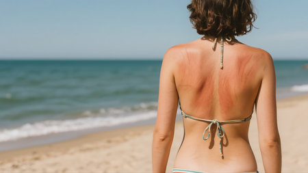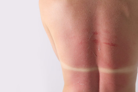 Sunburn marks on skin reveal the impact of sun exposure after an outdoor activity in bright sunlight