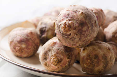 Vegan suisine - Raw topinambur root or Jerusalem artichoke