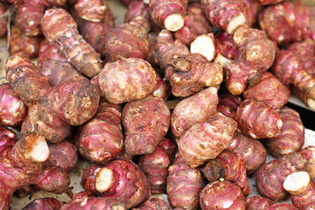 Big bunch of Jerusalem artichokes sunroot vegetable