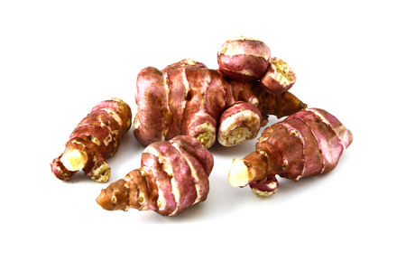 Bunch of fresh organic jerusalem artichoke close up isolated on white background