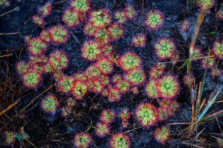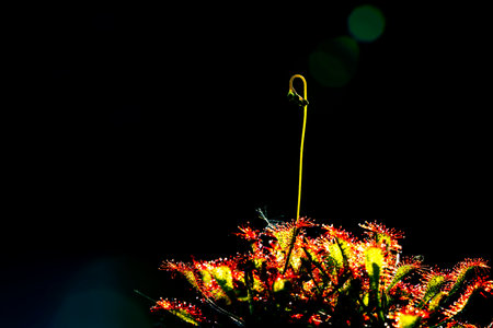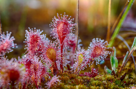 macro shot of a carnivorous plant named Drosera, often found in swamps