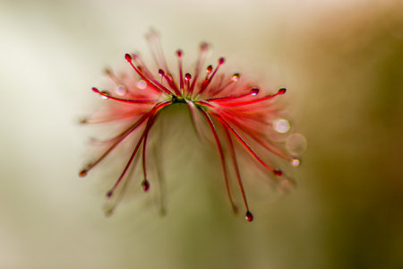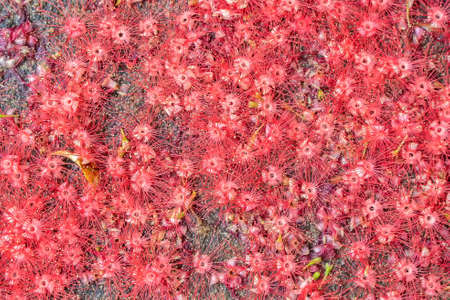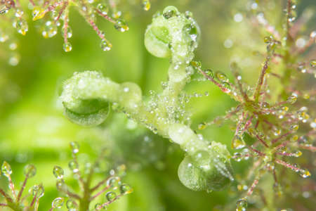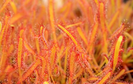 Detail of sticky structures of insectivorous drosera plant, sundew.