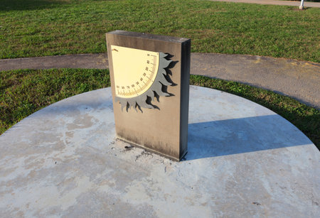 Sundial in park early in morning. Educational and models for astronomy. High quality photo
