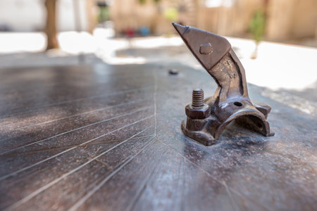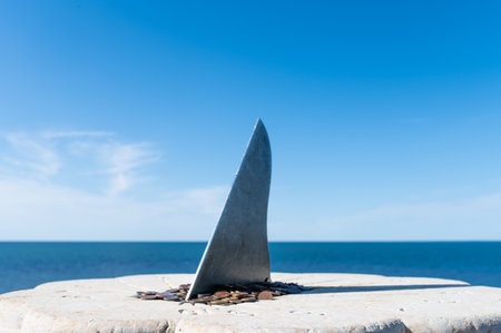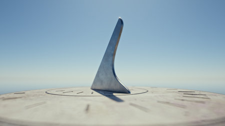 Closeup of sundial with gnomon at noon time, realistic 3d render