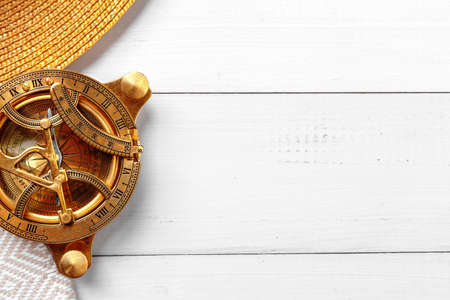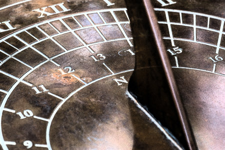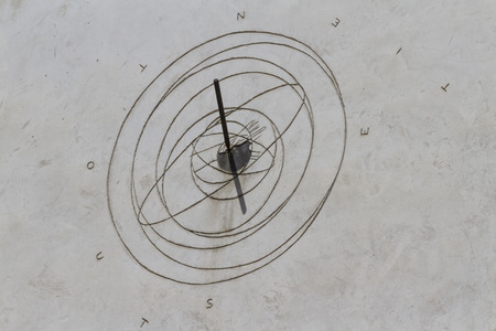 Sundial classic, detail of ancient sundial painted on the floor, old instrument