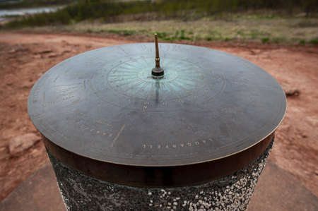 Spring Equinox, World Sundial Day. Beautiful Old Sundial showing 4 PM on Panga Cliff, Saaremaa, Estonia