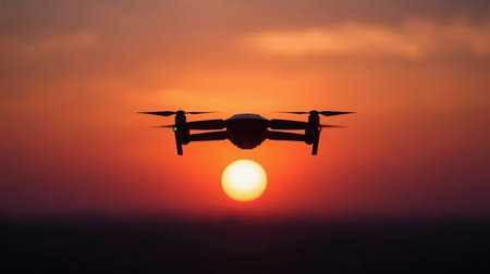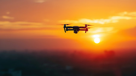 Silhouette of a drone flying against a breathtaking orange sunset, symbolizing innovation and technology in photography.