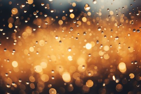 Water droplets on dark surface with orange bokeh lights