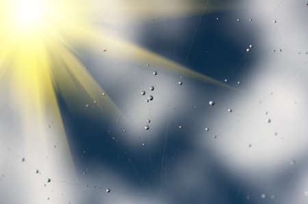 Dew drops close-up on a spider web background