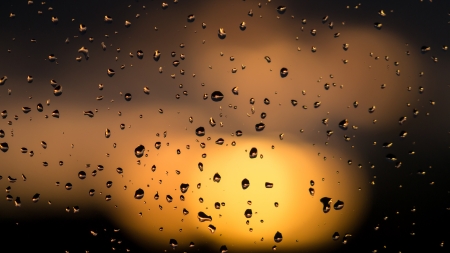 raindrops on the window at sunset, raindrops on the glass