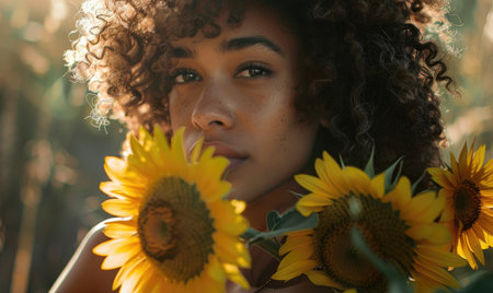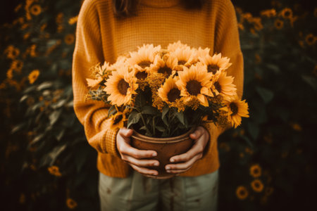 Radiant Beauty: A Captivating Portrait of a Person Grasping Sunflowers
