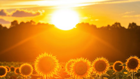 Sunflowers bloom in a vibrant field at sunset radiating warmth and beauty during late summer