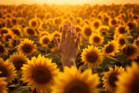 Basking in Natures Glory: A Spectacle of Hands Rising in a Sunflower Field