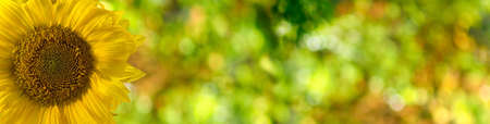 Banner part of sunflower sun against the background of the blue sky
