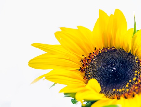 Beautiful and vibrant yellow sunflower. Decoration and summer time concept. Place for text or inscription on white boards