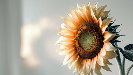 sunflower close up with sunlight and copy space