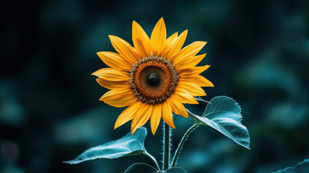 Single bright sunflower against dark blue background