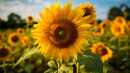 Generative AI : Beautiful sunflower in the field with bright blue sky