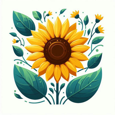Sunflower with leaves and sunflowers. Vector Illustration.