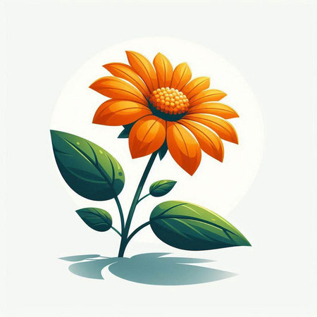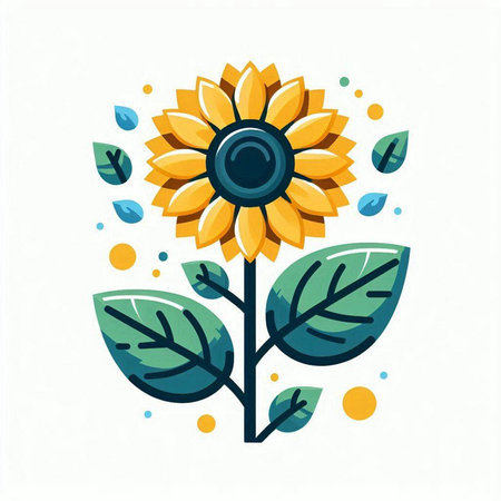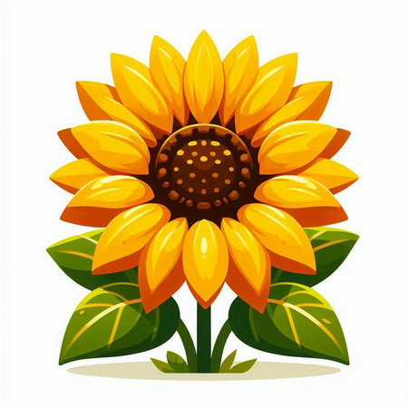 Sunflower icon. Vector illustration of a sunflower with leaves.