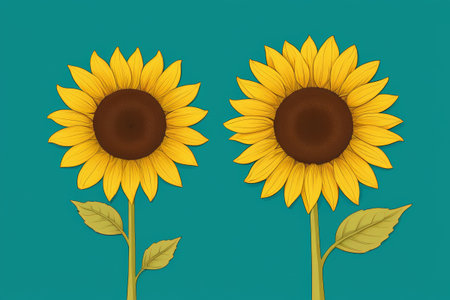 Two radiant sunflowers showcase their vibrant yellow petals against a blurred background, capturing a serene moment in nature. Perfect for themes of growth and beauty.
