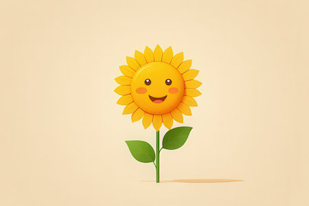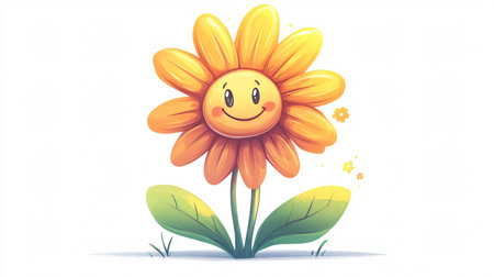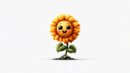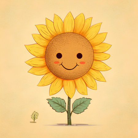 Cute cartoon-style sunflower drawing with smiling face, playful and fun design on white background