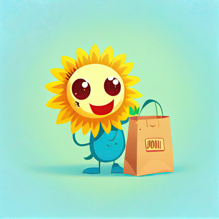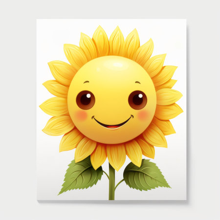 a sunny smiling poster featuring a realistic, playful cartoon illustration of a flower. this kawaii art style creates a luxurious wall hanging with a solarization effect. the shaped canvas enhances the colorful caricature, making it a vibrant and eye-catching piece. ai generated