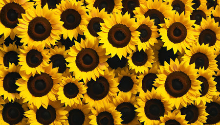 Pattern of Decorative Sunflower on dark background. Symbol of Ukraine.