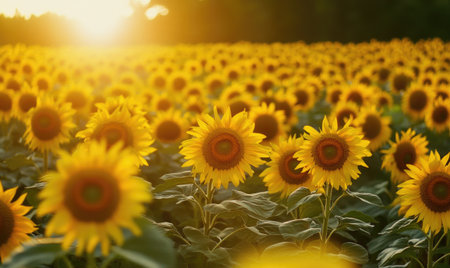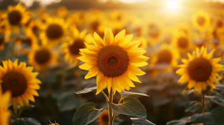 Vibrant sunflower field in full bloom at sunset showcasing natures beauty