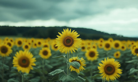 a vibrant sunflower flower field, bursting with golden blooms, stretches as far as the eye can see. the sun-kissed petals create a stunning display of nature's beauty, captivating anyone who sets their gaze upon this breathtaking sight. sunflower field, sunflower flowers, golden blooms, vibrant display, nature's beauty. ai generated