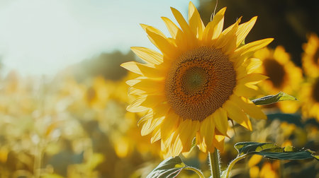 AI Generated. A Single Sunflower in a Field of Sunflowers with a Golden Light Background
