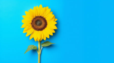 Single sunflower blue color background. Generative AI.