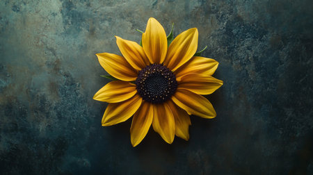 Vibrant sunflower blossom against a dark textured backdrop.