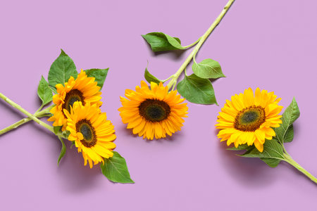 Beautiful sunflowers on purple background