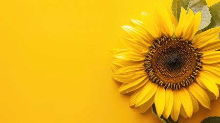 Bright sunflower against vibrant yellow background
