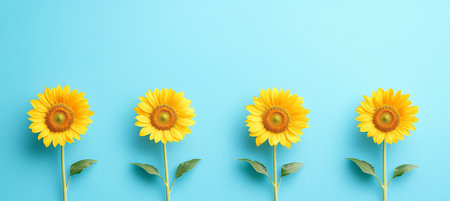 Four Beautiful Sunflowers on a Vibrant Blue Background with Ample Copy Space for Text