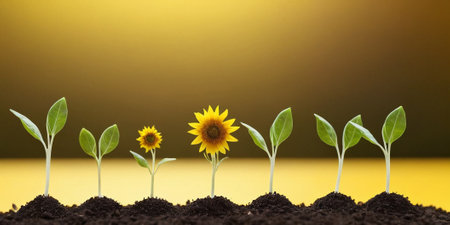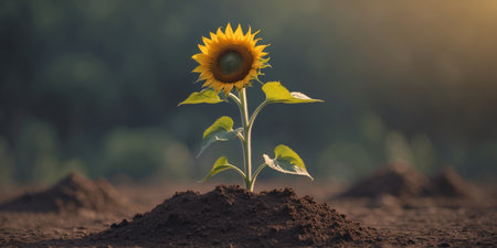 AI Generated. Sunflower growing from soil symbolizes the importance of renewable energy solutions