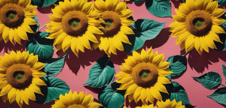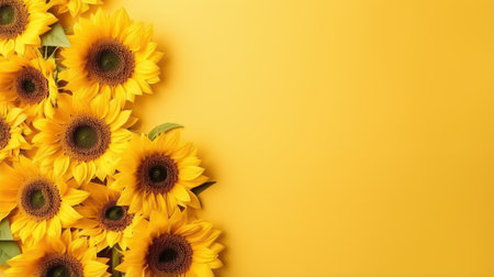 Creative layout made with sunflowers on bright yellow background, top view, by ai generative