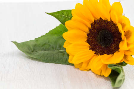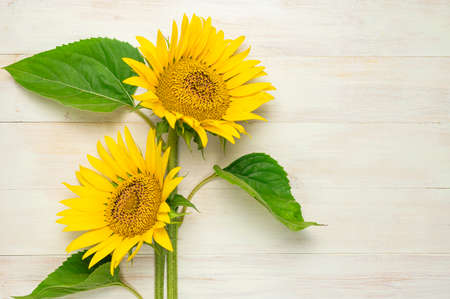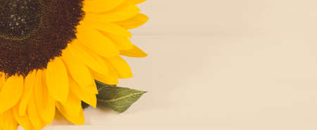 Beautiful and vibrant yellow sunflower. Decoration and summer time concept. Place for text or inscription on white boards. Vintage photo