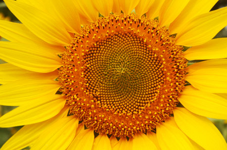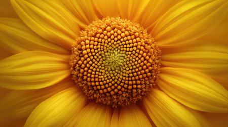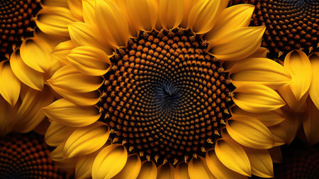 A stunning close-up view of a sunflower reveals its mesmerizing yellow petals and intricate seed patterns, capturing the essence of nature's beauty and vibrant energy.