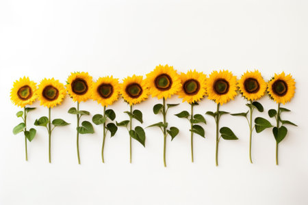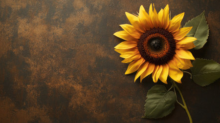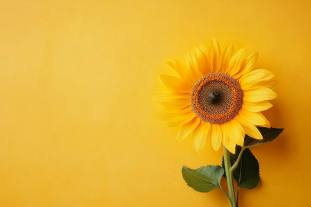 Flat lay of a sunflower with a large open area around it, ideal for adding text or logos for promotional purposes.