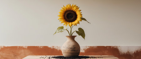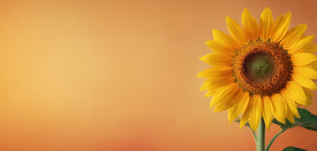 Sunflower plant banner. Sunrise warm color. Generate AI